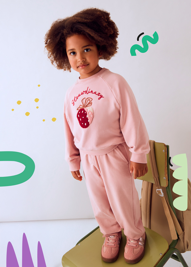 Chandal bordado niña de la marca Mayoral. Chándal de dos piezas para niña con sudadera y pantalón largo.