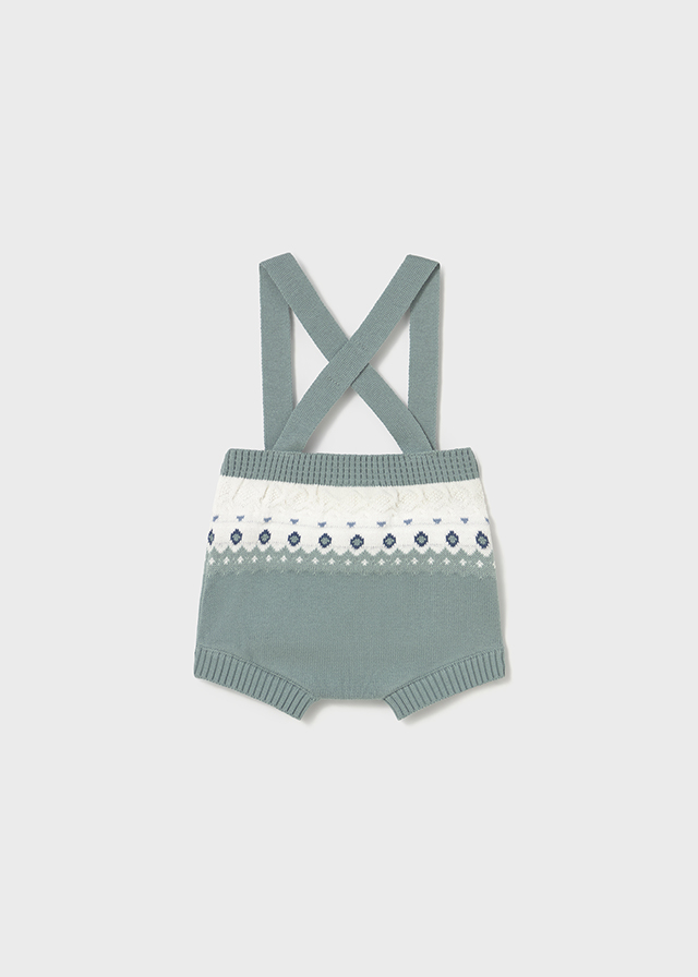 Original conjunto de tres piezas para recien nacido. Chaqueta tipo cardigan con cuello redondo. Cierre con botones en la parte delantera y bolsillos funcionales. Pantalon-peto de cierre con botones. Tejido de tacto suave y agradable. Body de manga larga. Cierre con botones a presión en la parte posterior. Botones a presión en la entrepierna para facilitar la puesta de la prenda.